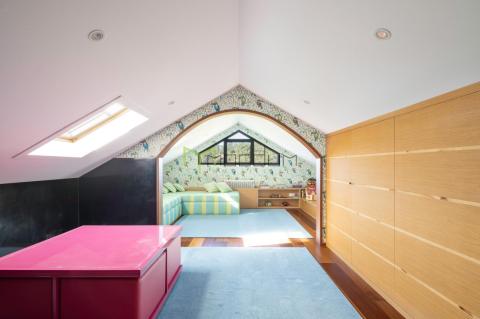 En la planta superior, encontramos dos habitaciones adicionales, un baño completo y una acogedora zona abuhardillada, perfecta como despacho, sala de ocio o espacio creativo.