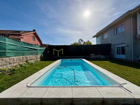 En el exterior, la casa ofrece un cuidado jardín y una fantástica piscina climatizada, perfecta para disfrutar en cualquier época del año.